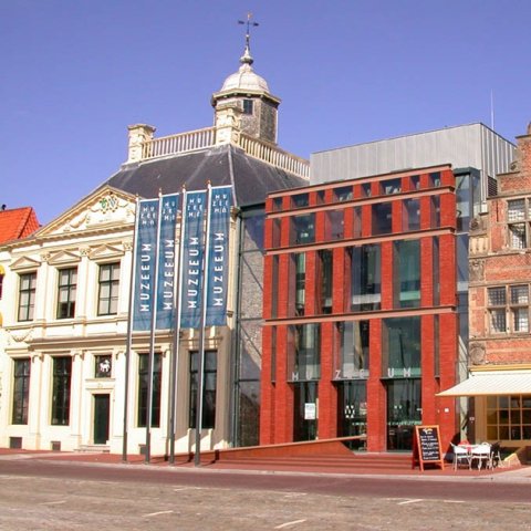 Het pand van het muZEEum 100 meter terug richting binnenstad, is een fraai staaltje van de combinatie oude en moderne architectuur.
