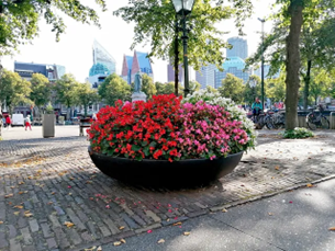 Om de uitstraling van het plein te verbeteren, plaatsen we zogenoemde 'seizoensbloembakken' in de voormalige waterbak.