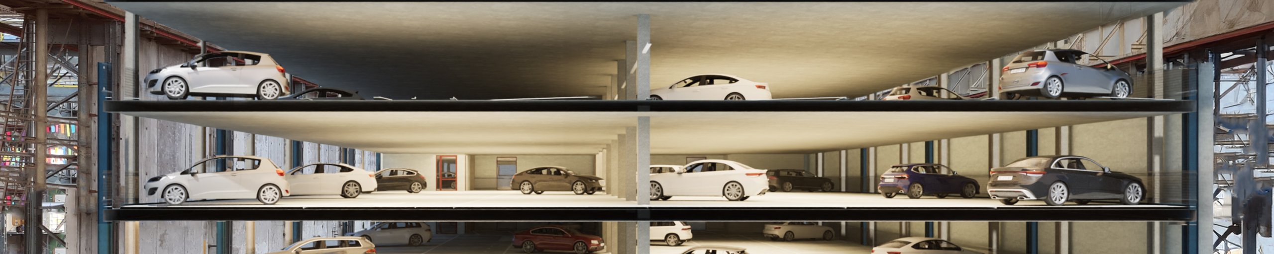 Continental Car Parks voorziet de realisatie van een parkeergarage in 5 lagen in de Machinefabriek, met in totaal 625 parkeerplaatsen.