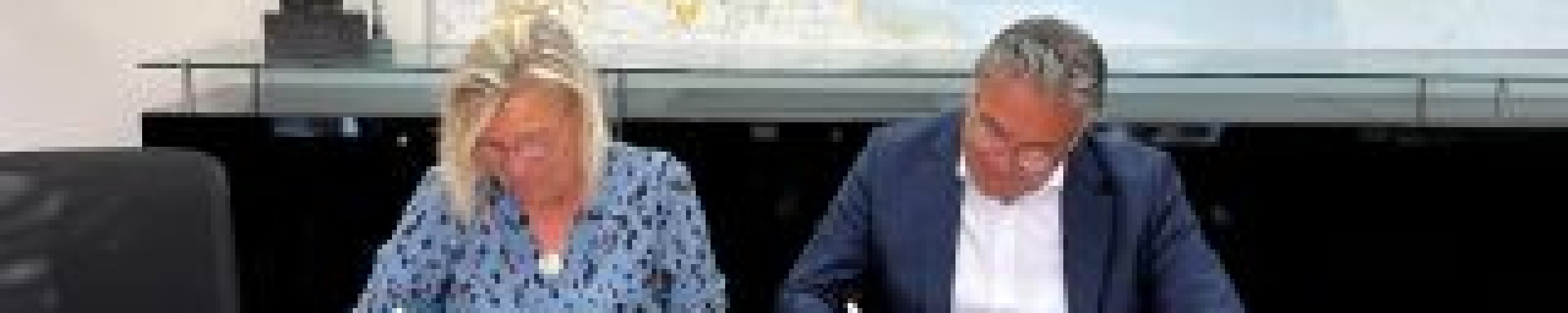 De samenwerkingsovereenkomst werd ondertekend door wethouder J. Portier (op de foto rechts) en de voorzitter van de Adviesraad mevrouw I. Kleingeld.