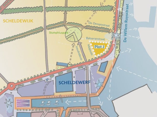 Plot J op het Scheldekwartier -deelgebied Scheldewijk- vormt het laatst te ontwikkelen bouwplot in het onherroepelijke bestemmingsplan ‘Scheldekwartier Noord, Scheldewijk Oost’.