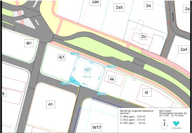 - Perceel: Gemeente Vlissingen, Sectie K, nummer 1260 (gedeeltelijk), Sectie C, nummers 2802 (gedeeltelijk) en 2860 (gedeeltelijk) van in totaal circa 1.023 vierkante meter. Hierna te noemen 4j2.